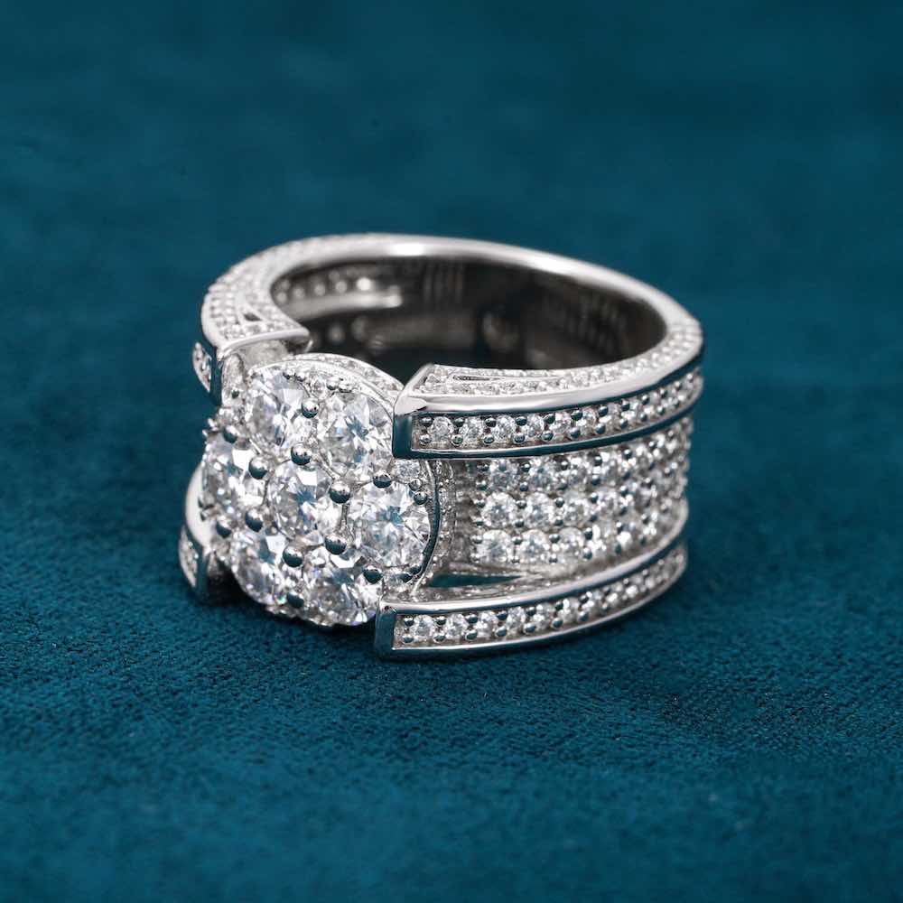 Moissanite 5 Row Cluster Ring